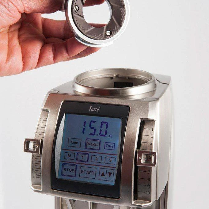 A unique feature of the Forté is the ability to convert a weight preset into a timed value that is accurate within plus or minus .5 grams of the set point. This allows for weight oriented dosing for espresso.