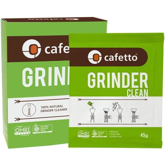 Cleans grinder burrs and casings to improve grinder performance and extend life of grinder burrs.