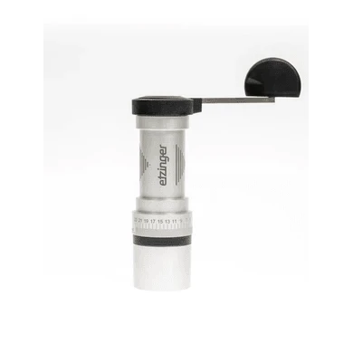 Rotating hollow shafts to eliminate disturbing center mechanics ensure for your etz-I to be quickly filled and ready-for-use. Thanks to the external vernier scale (identical point of reference for all grinders), it`s really easy to adjust and to return to your setting after cleaning. Opened with a flick of the wrist (literally), swiftly cleaned and reassembled without any tools or screws, this is what etz-I is all about. Although not totally necessary but nice to have, is the retractable crank ensuring for space-saving storage thus enabling users to easily stow and pack the grinder – or to just show it off next to the coffee machine.