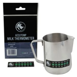 The Rhino Coffee Gear Accutemp thermometer is a stick-on thermometer that will help you achieve perfect results with your milk every time!